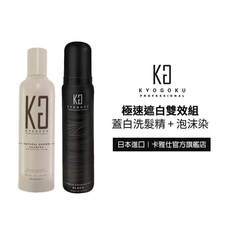 KYOGOKU日本卡雅仕 極速遮白雙效組(蓋白髮染髮洗髮精200ml*1入+奇蹟角蛋白泡沫染*1入)(黑髮/白髮補/泡泡染/護髮)
