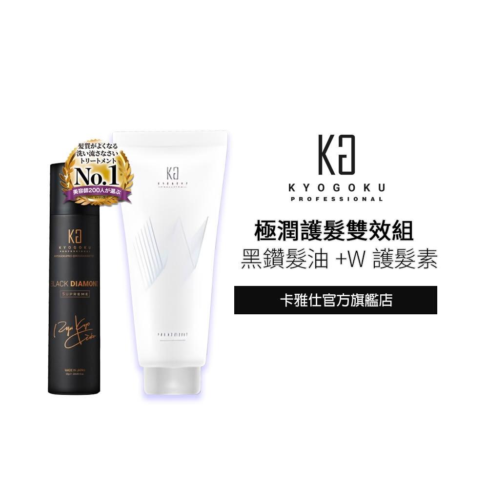 KYOGOKU日本卡雅仕 極潤護髮雙效組-奇蹟角蛋白W護髮素200g+黑鑽石噴霧髮油80g(乾濕可用/髮膜/乳)