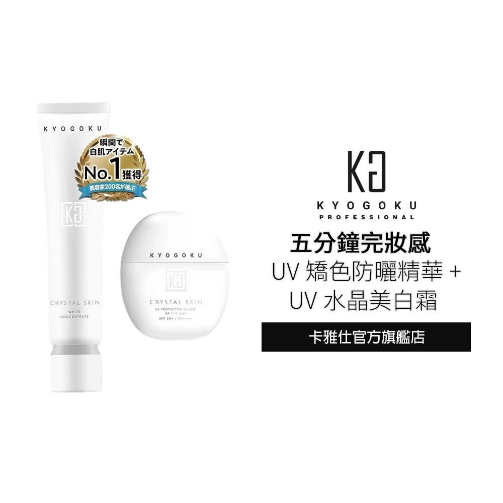 KYOGOKU日本卡雅仕 UV水晶矯色美白防曬精華+水晶美白霜40g ( 美白 保濕 小白球 紫妝前乳 修正膚色 美容精華)