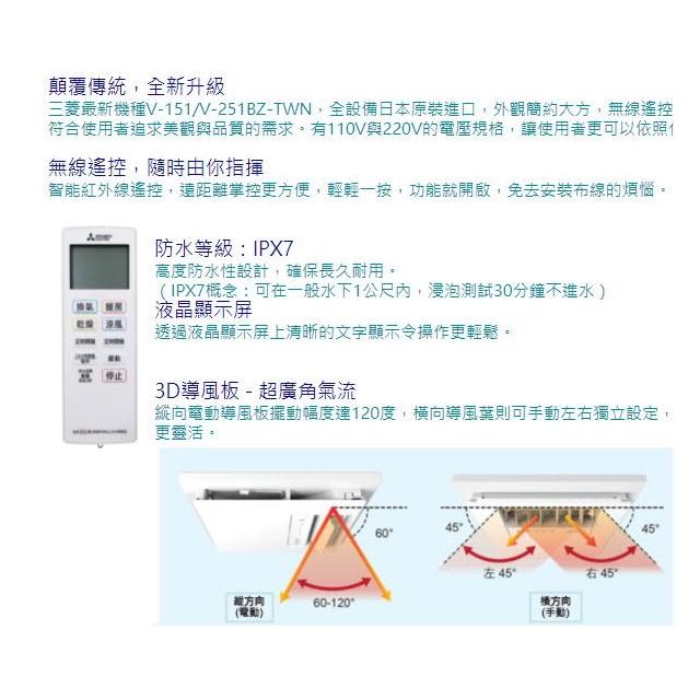 MITSUBISHI 三菱重工V-151BZ-TWN V-251BZ-TWN 遙控器