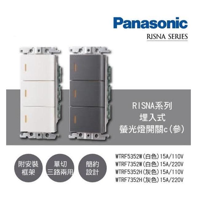 Panasonic 國際牌RISNA系列 3開關 110V WTRF5352 HS 灰蓋板+銀邊 高雄永興照明