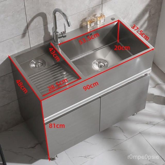 不鏽鋼水槽 洗手槽 洗衣槽 不銹鋼洗衣櫃陽臺家用洗衣池單櫃落地式浴室櫃組閤帶搓闆 洗菜盆 水槽櫃 流理臺