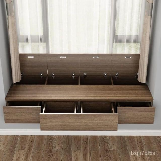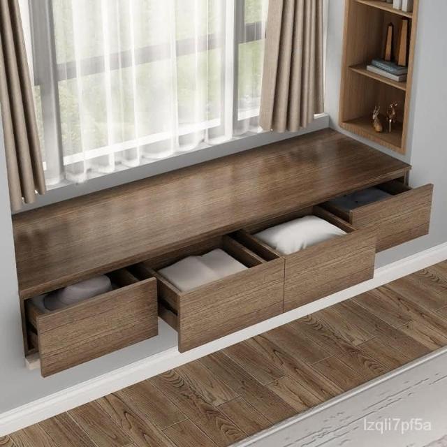可開發票/ 實木飄窗櫃子陽臺儲物櫃窗臺抽屜地櫃收納矮櫃榻榻米落地櫃可定製 儲物櫃 窗邊櫃 飄窗櫃 榻榻米