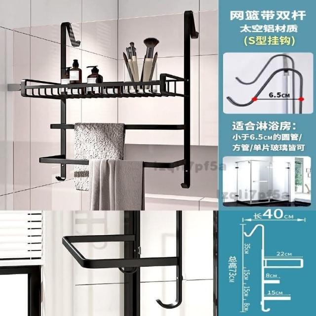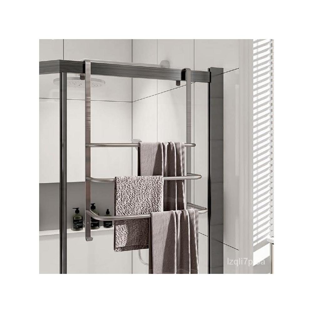 ✨*免運✨ 浴室毛巾掛架衛生間置物架免打孔門後淋浴房玻璃門浴巾輕奢毛巾桿#淋浴房置物架 收納架 毛巾架 浴巾架