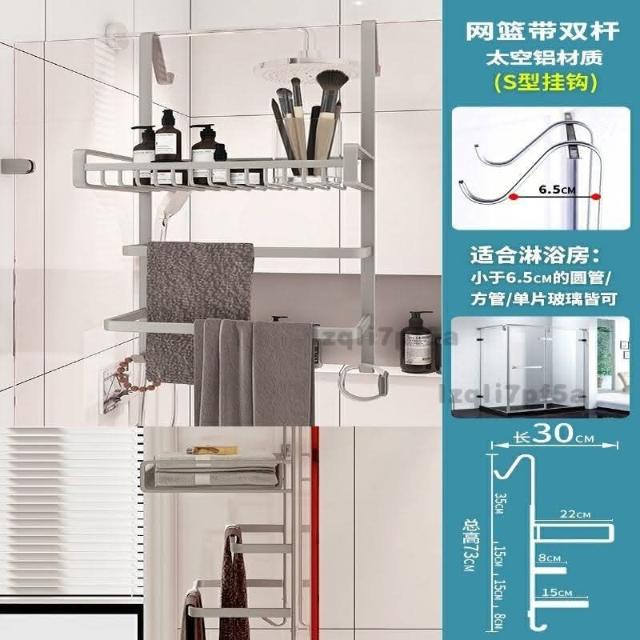 ✨*免運✨ 浴室毛巾掛架衛生間置物架免打孔門後淋浴房玻璃門浴巾輕奢毛巾桿#淋浴房置物架 收納架 毛巾架 浴巾架