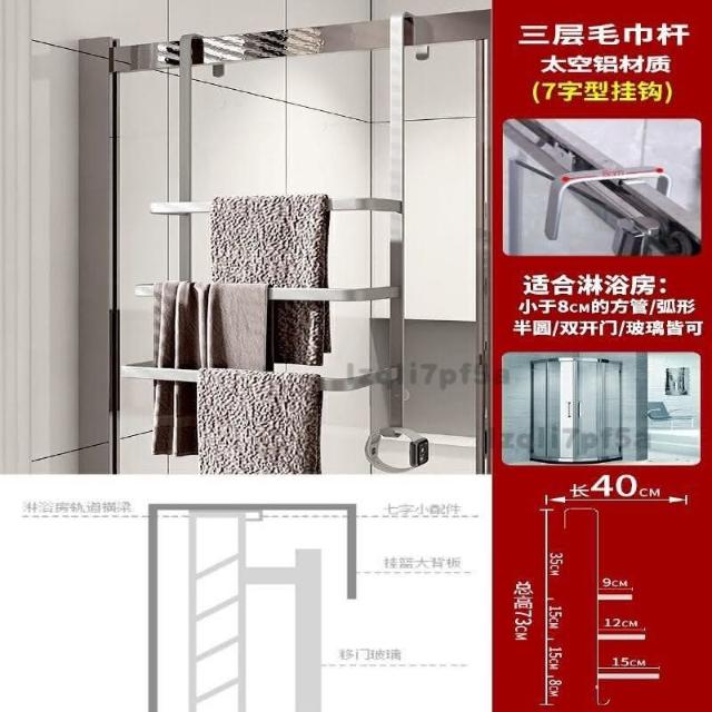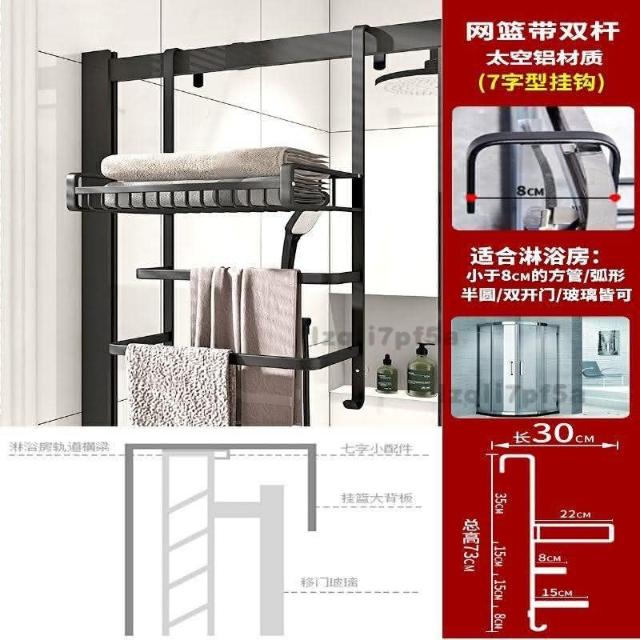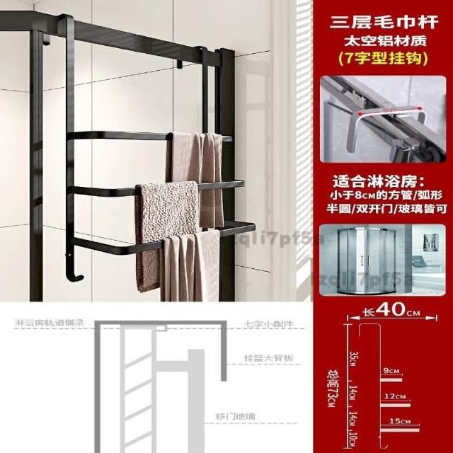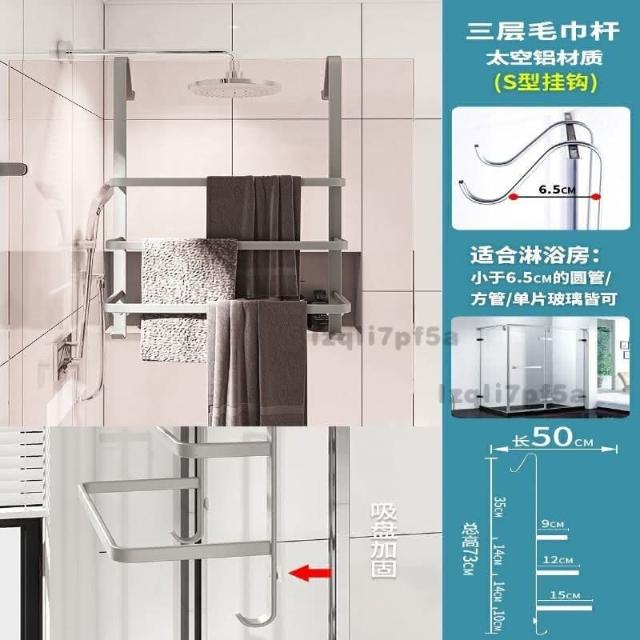 ✨*免運✨ 浴室毛巾掛架衛生間置物架免打孔門後淋浴房玻璃門浴巾輕奢毛巾桿#淋浴房置物架 收納架 毛巾架 浴巾架
