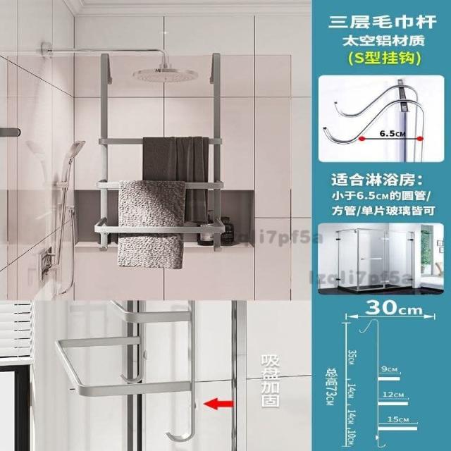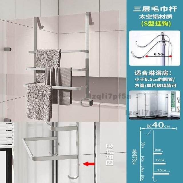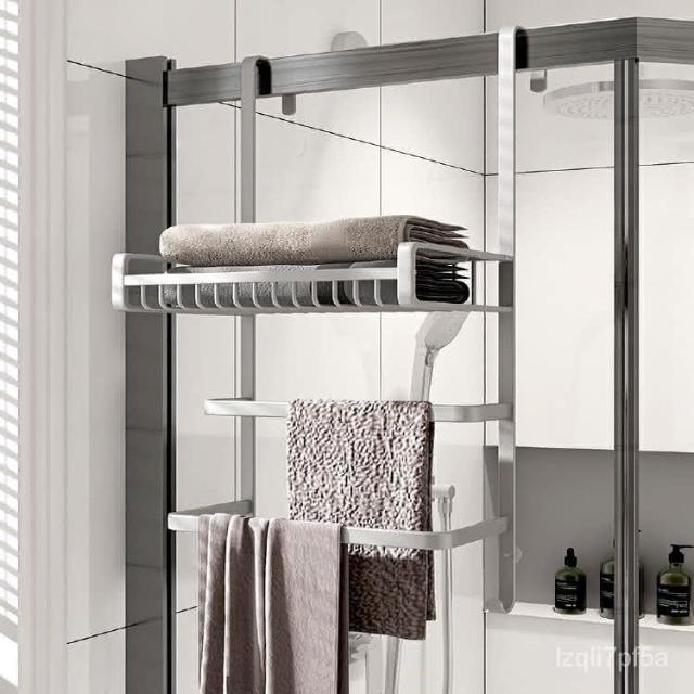 ✨*免運✨ 浴室毛巾掛架衛生間置物架免打孔門後淋浴房玻璃門浴巾輕奢毛巾桿#淋浴房置物架 收納架 毛巾架 浴巾架