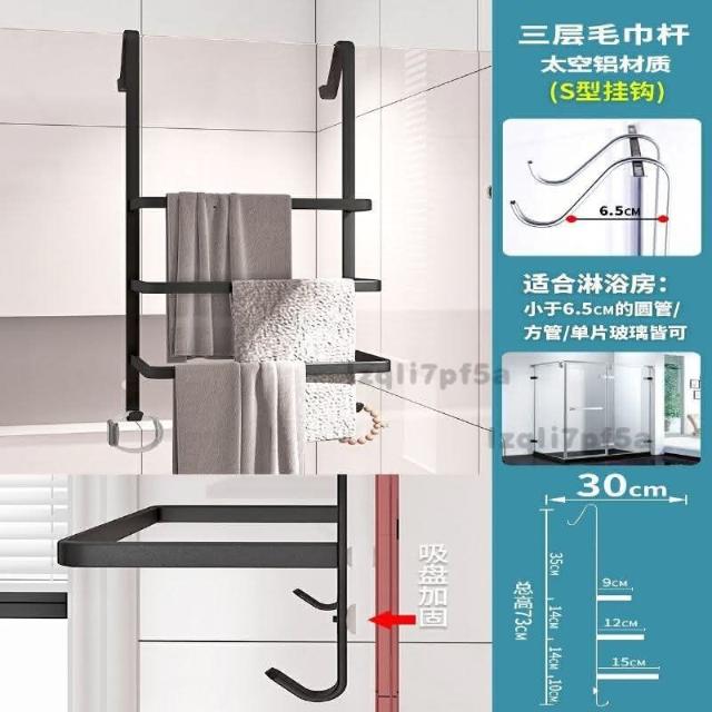 ✨*免運✨ 浴室毛巾掛架衛生間置物架免打孔門後淋浴房玻璃門浴巾輕奢毛巾桿#淋浴房置物架 收納架 毛巾架 浴巾架