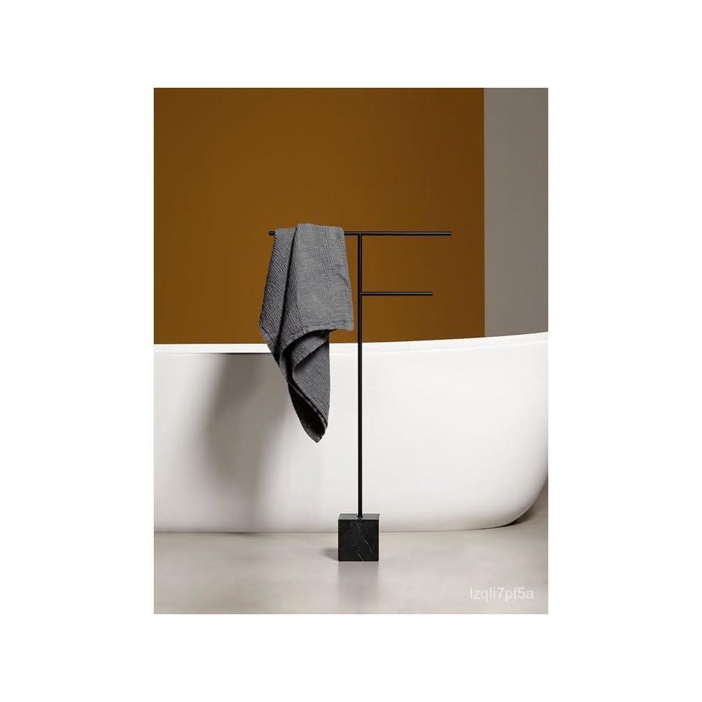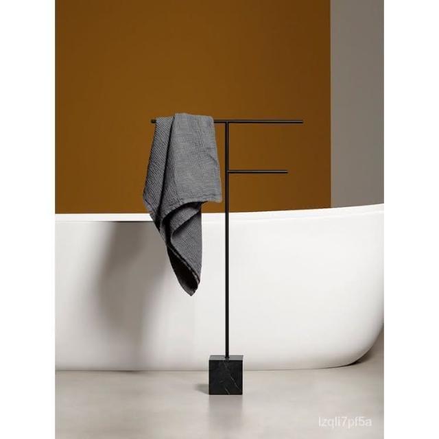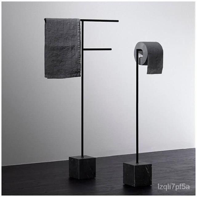 熱銷#免運 北歐浴室免打孔毛巾架落地紙巾置物架 輕奢收納架黑色不銹鋼架子 落地毛巾架/直立毛巾架/浴巾架/毛巾收納