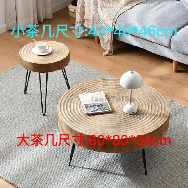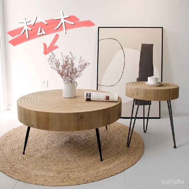 💯新品 侘寂風實木茶幾咖啡桌 民宿客廳沙發邊角幾 小戶型傢用網紅小圓桌邊桌 組合茶幾桌 桌子 茶几桌 客廳桌子 茶桌
