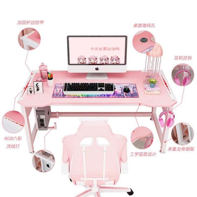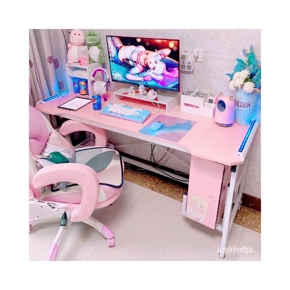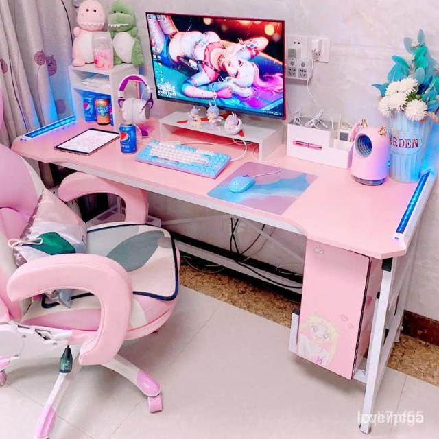 粉色電競電腦桌臺式傢用臥室少女遊戲直播桌椅套裝女生網紅書桌子 遊戲電競桌/書桌/辦公桌/桌子/工作桌/遊戲桌
