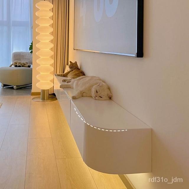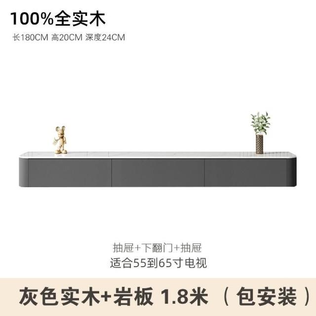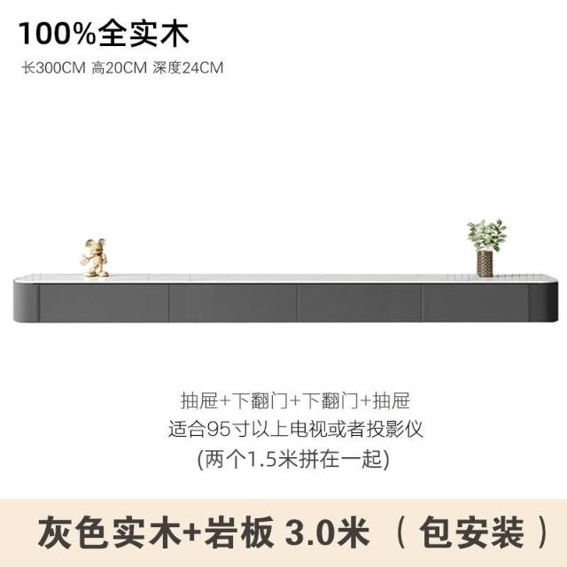 實木巖闆懸空電視櫃懸浮掛墻小戶型客廳臥室懸掛極簡壁掛式奶油風
