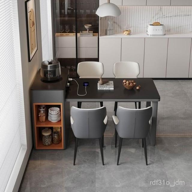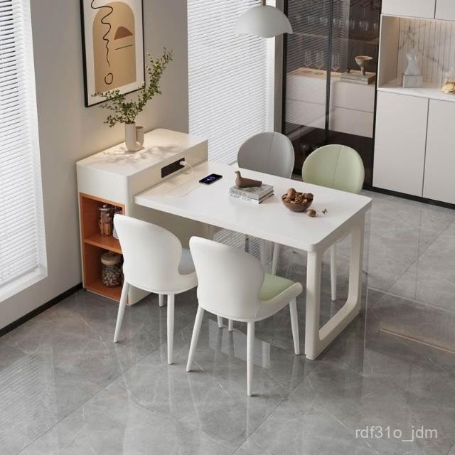 免運 可開發票 奶油風巖闆島臺餐桌茶臺一體可伸縮家用小戶型客廳現代簡約泡茶幾伸縮餐桌 巖闆餐桌 多功能餐桌 中島臺 餐桌