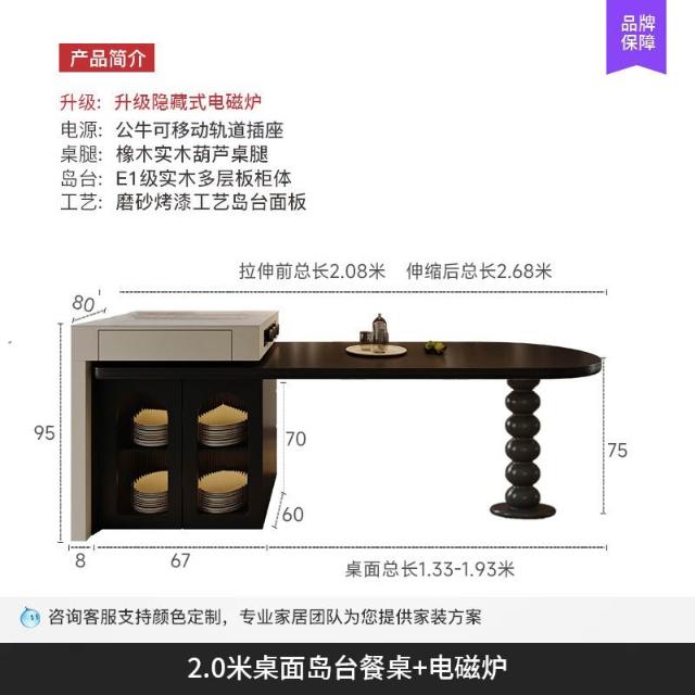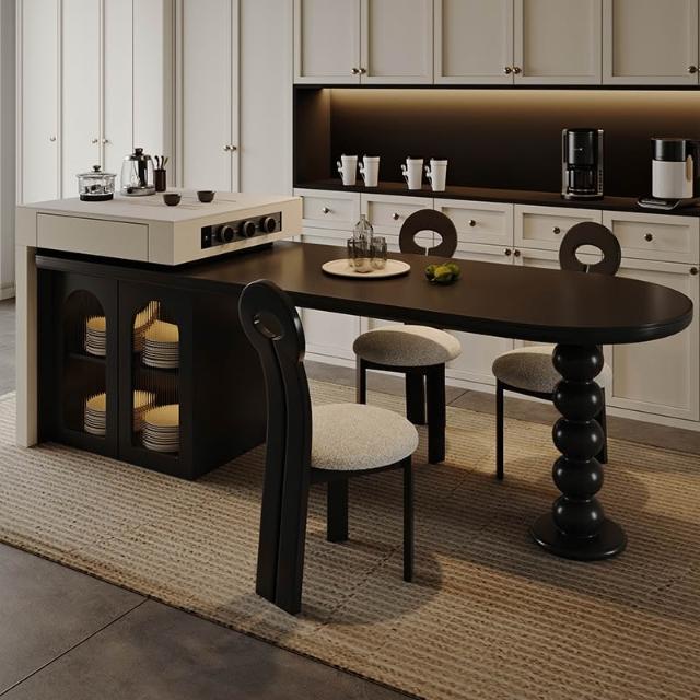 島台餐桌一體家用組合 意式輕奢高級感廚房餐廳岩板多功能中島台