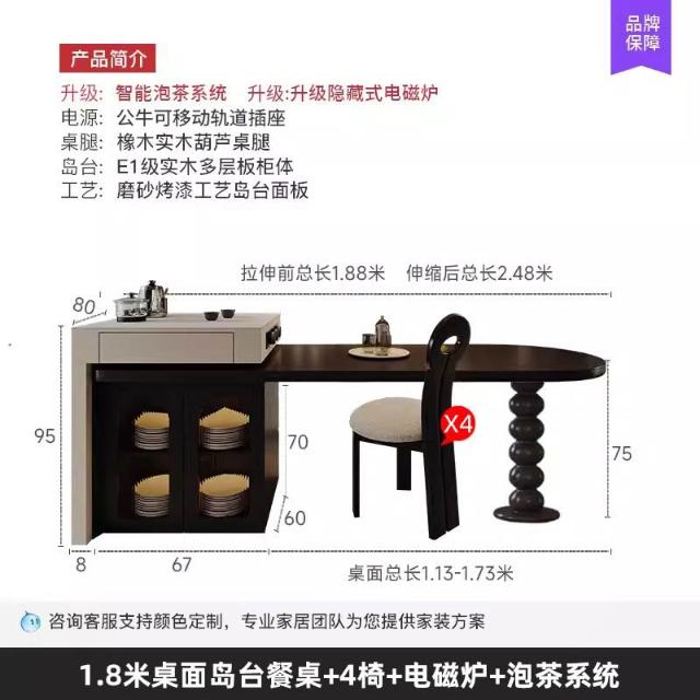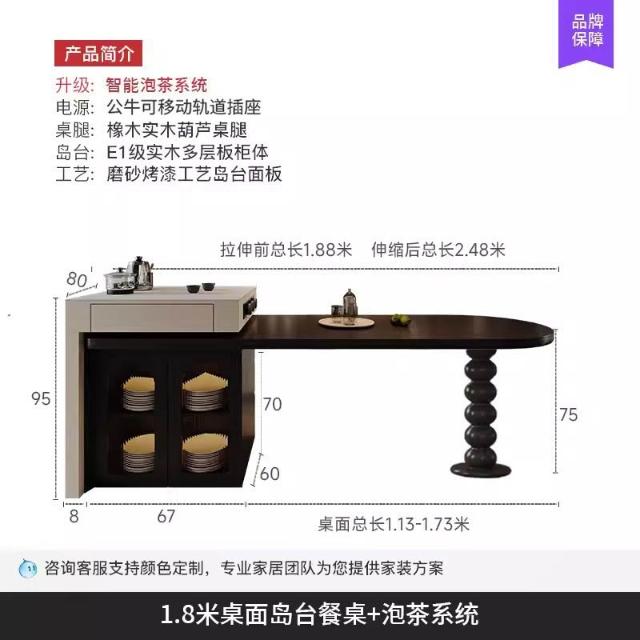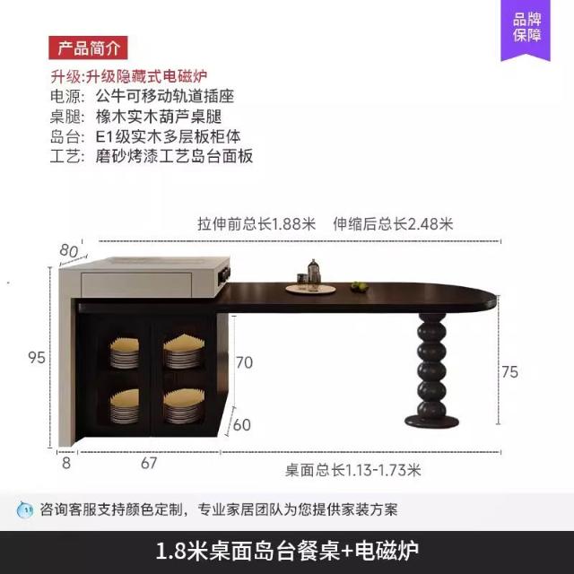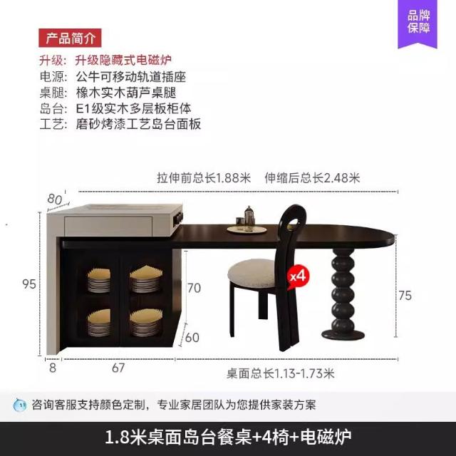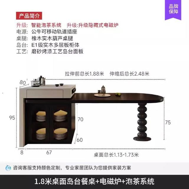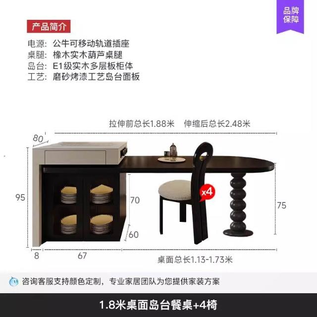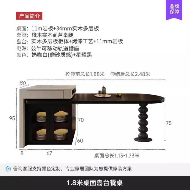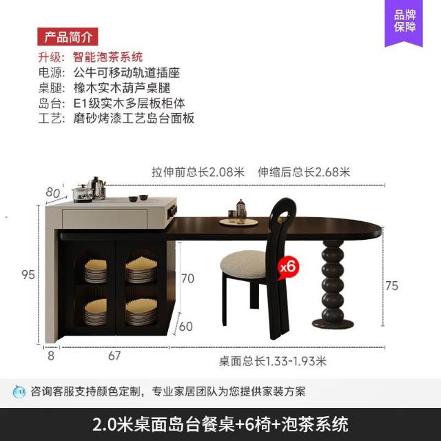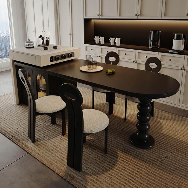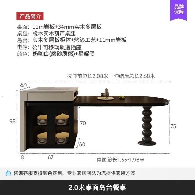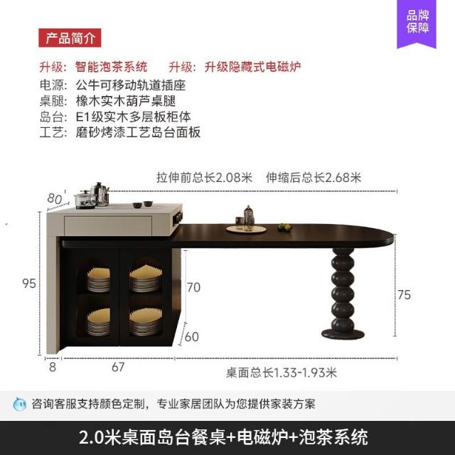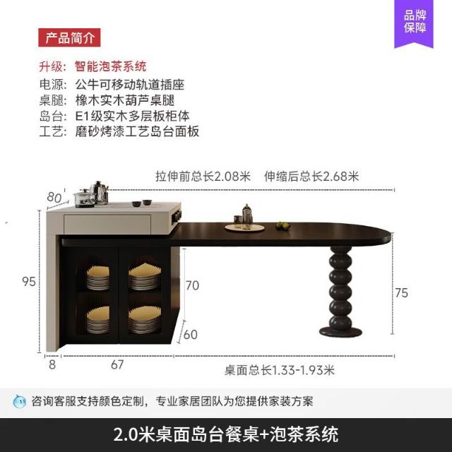 島台餐桌一體家用組合 意式輕奢高級感廚房餐廳岩板多功能中島台