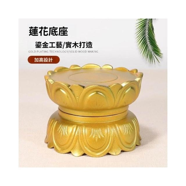熱賣·實木佛像底座 加高圓形財神關公供奉神像金色蓮花擺件底座 佛具 神明用品 鎏金蓮花高臺觀音底座 雙層蓮花底座