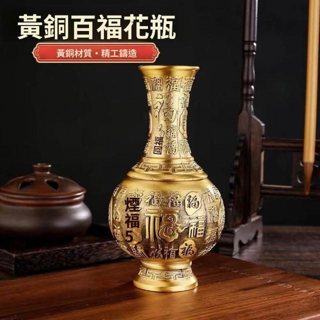 黃銅花瓶 浮鵰花瓶 招財百福花瓶 銅花瓶 招財花瓶 拜佛花瓶 花瓶佛具 拜拜花瓶 花瓶 神桌花瓶 佛堂插花花瓶