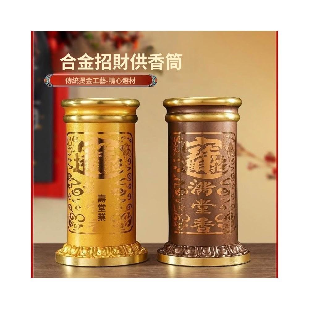 招財進寶閤金香筒 供佛香桶 香筒 立香筒 佛香筒 線香筒 神明用品 佛具 拜拜用品 佛堂供奉裝香桶 放香桶 存香盒子