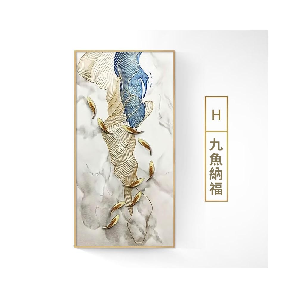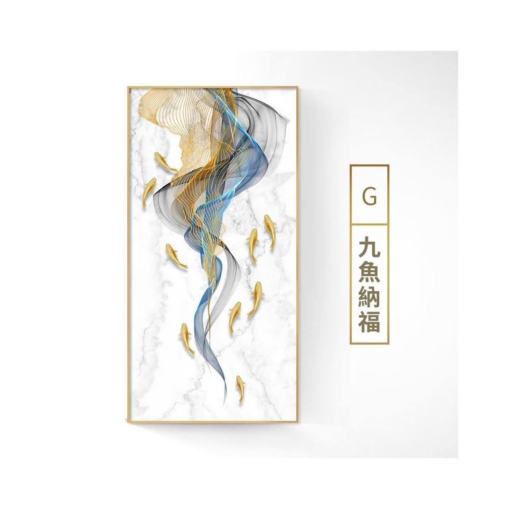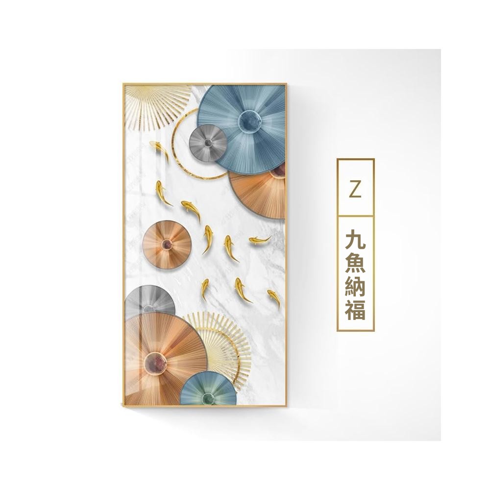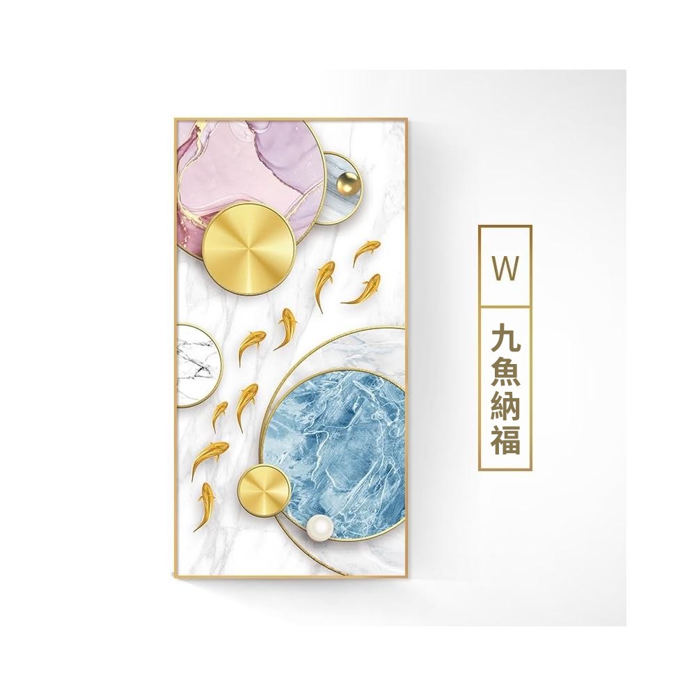 九魚圖玄關裝飾畫 晶瓷鑲鑽壁畫 走廊過道掛畫 現代簡約進門輕奢 高檔晶瓷畫 客廳掛畫 有框畫