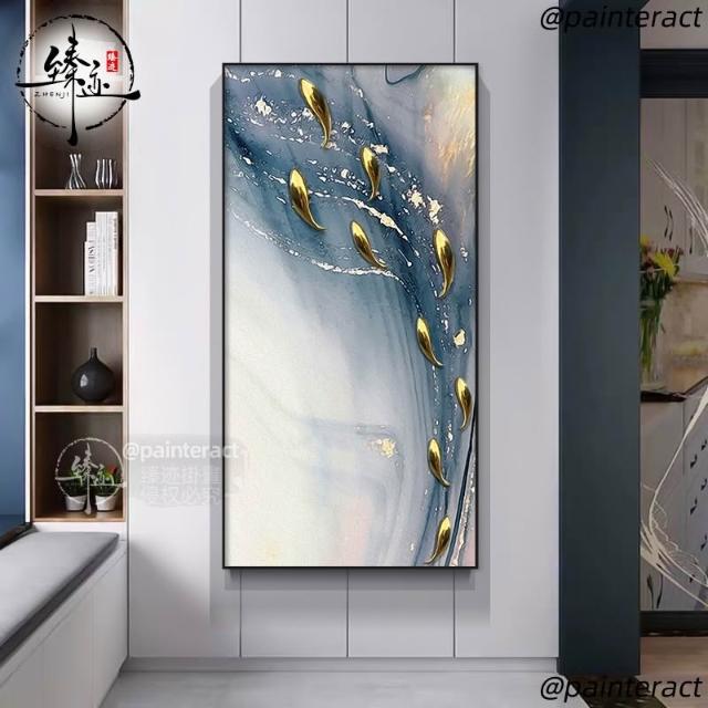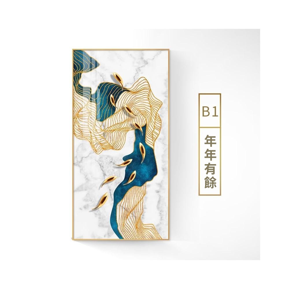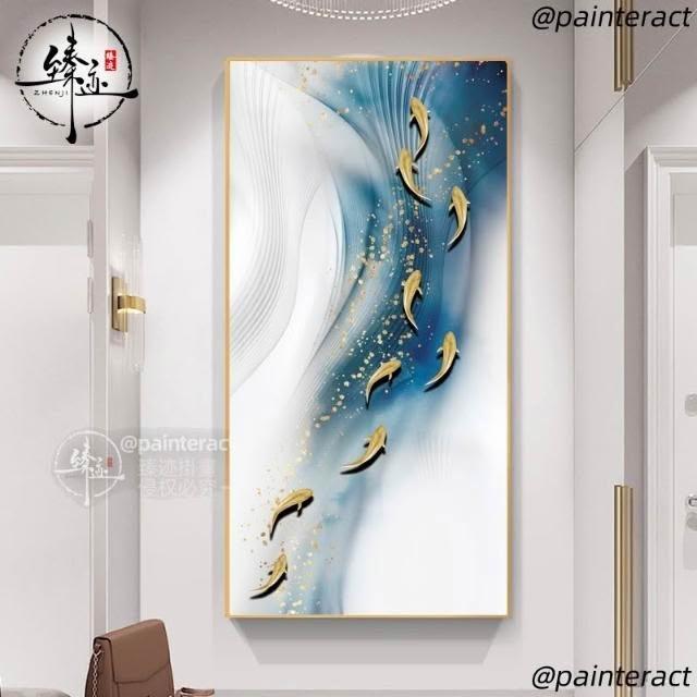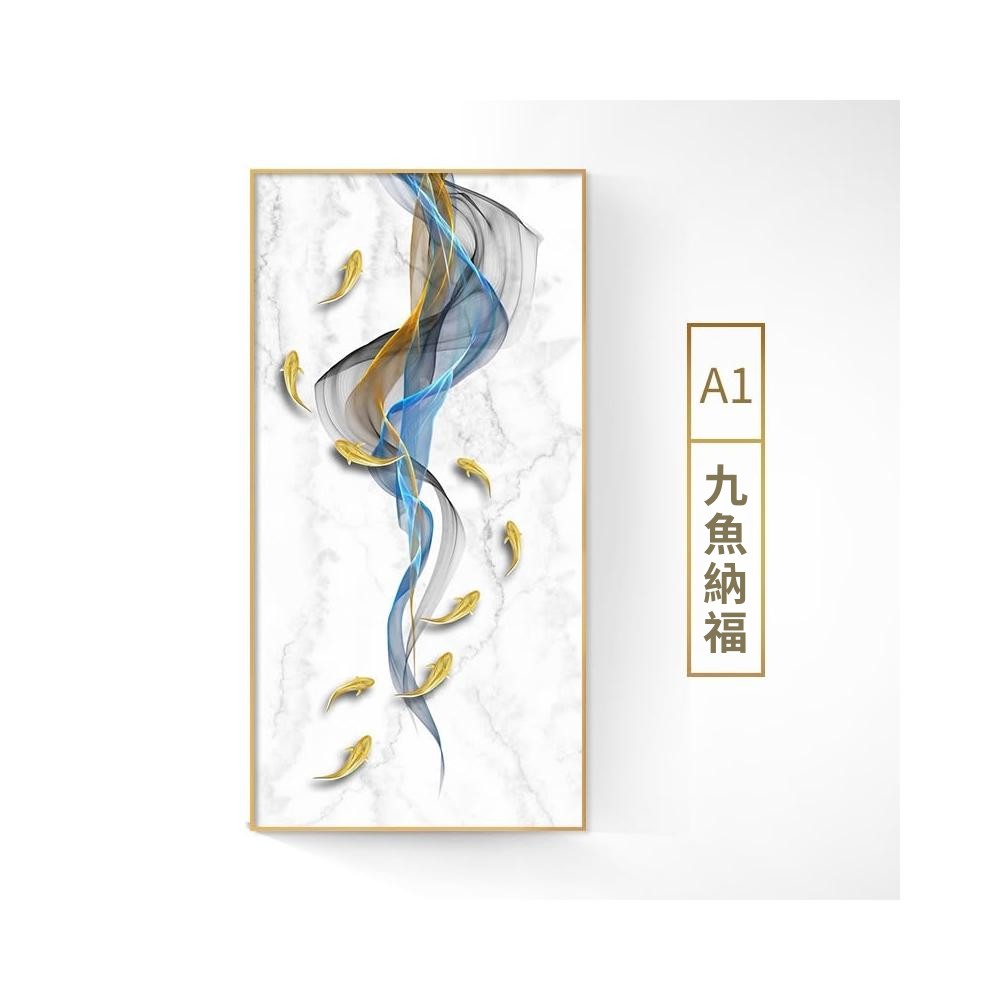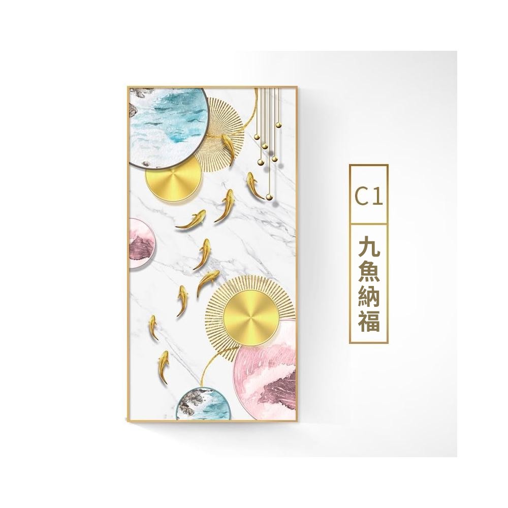 九魚圖玄關裝飾畫 晶瓷鑲鑽壁畫 走廊過道掛畫 現代簡約進門輕奢 高檔晶瓷畫 客廳掛畫 有框畫