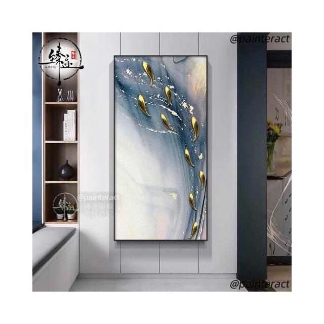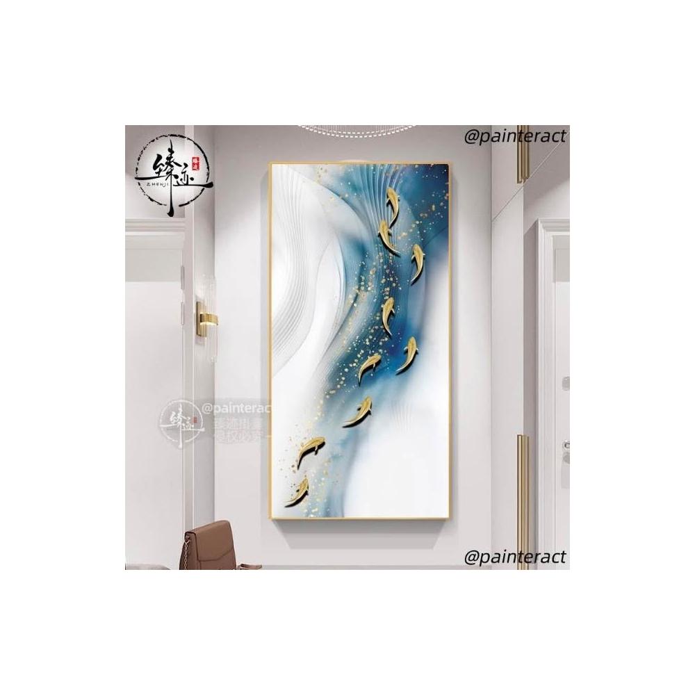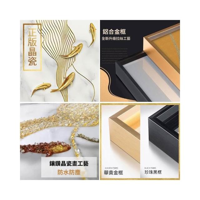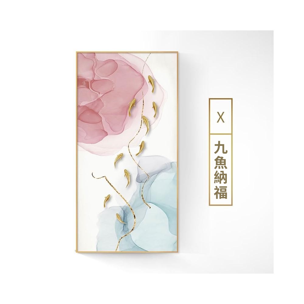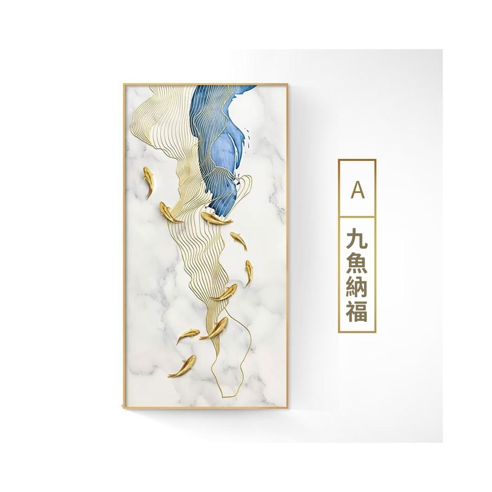 九魚圖玄關裝飾畫 晶瓷鑲鑽壁畫 走廊過道掛畫 現代簡約進門輕奢 高檔晶瓷畫 客廳掛畫 有框畫