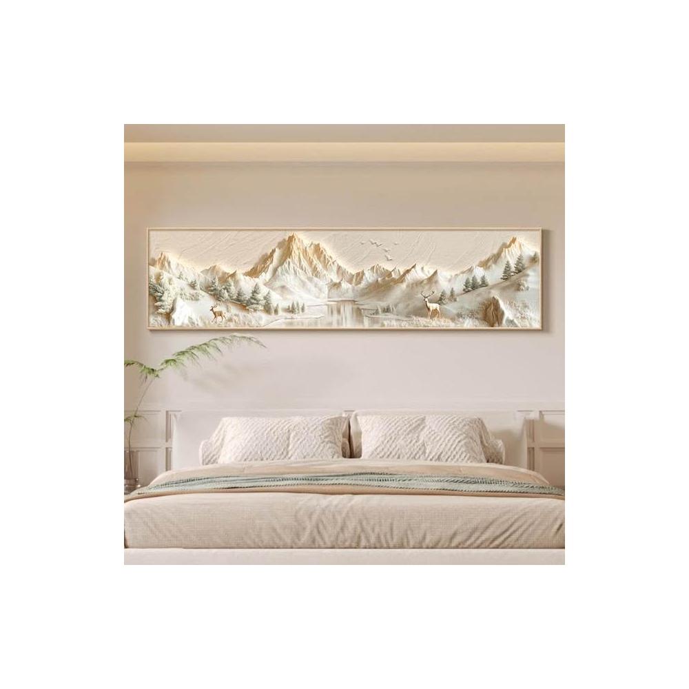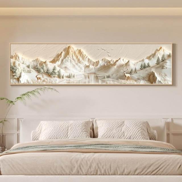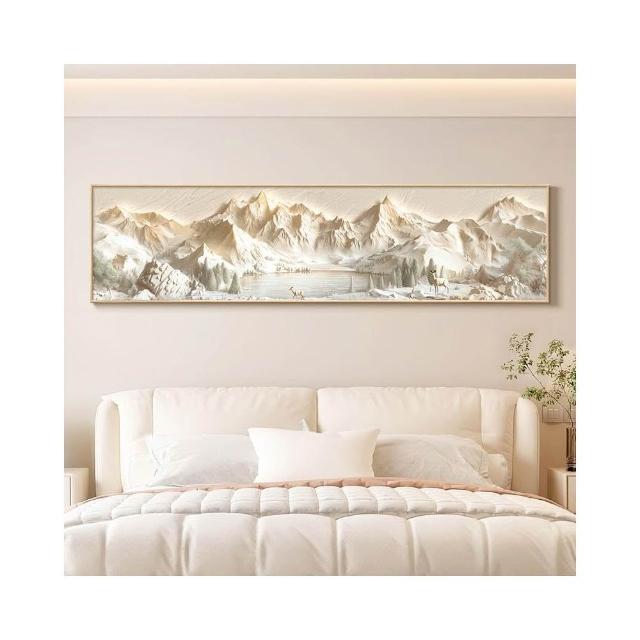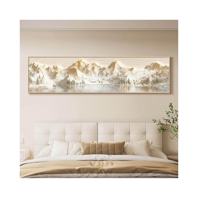 背靠金山床頭裝飾畫奶油風主臥室掛畫立體浮雕山水畫客廳牆面壁畫 高檔LED發光畫 晶瓷畫 27522110375