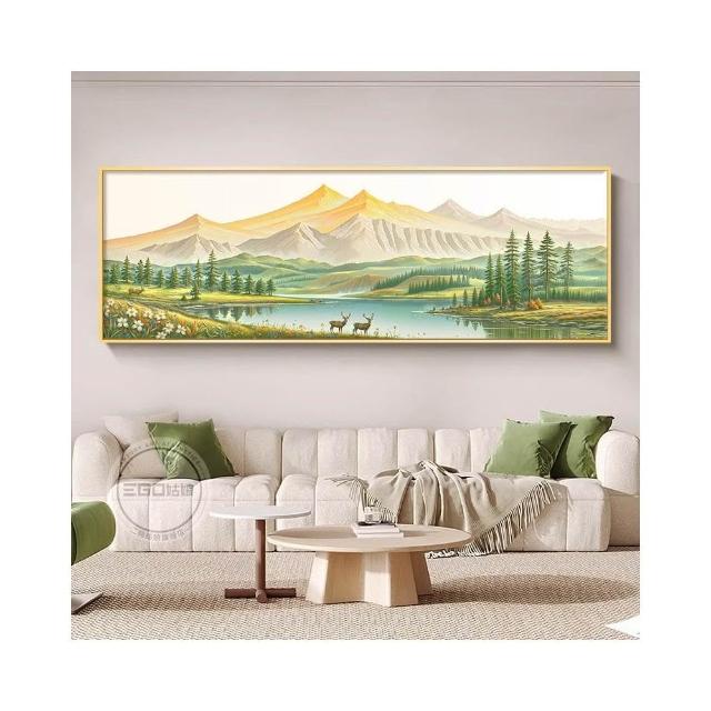 日照金山一整幅客廳裝飾畫聚寶盆聚財山水風景畫高級沙發後面掛畫 高檔LED發光畫 晶瓷畫 29226610715
