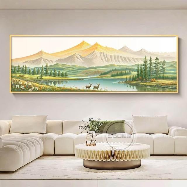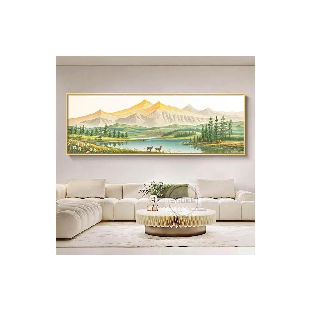 日照金山一整幅客廳裝飾畫聚寶盆聚財山水風景畫高級沙發後面掛畫 高檔LED發光畫 晶瓷畫 29226610715