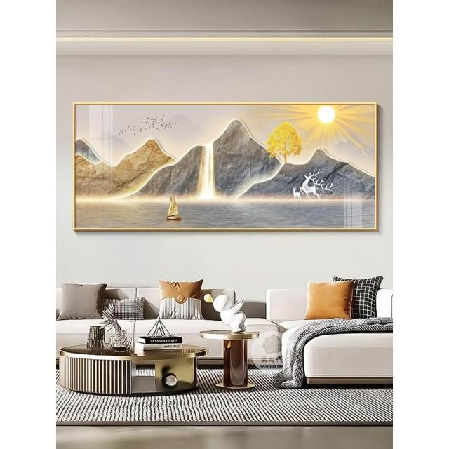 日出東方客廳裝飾畫東牆背有靠山沙發背景掛畫旭日東昇山水畫壁畫 高檔晶瓷畫 27726291956