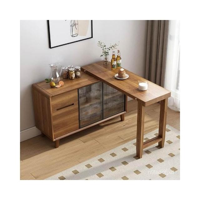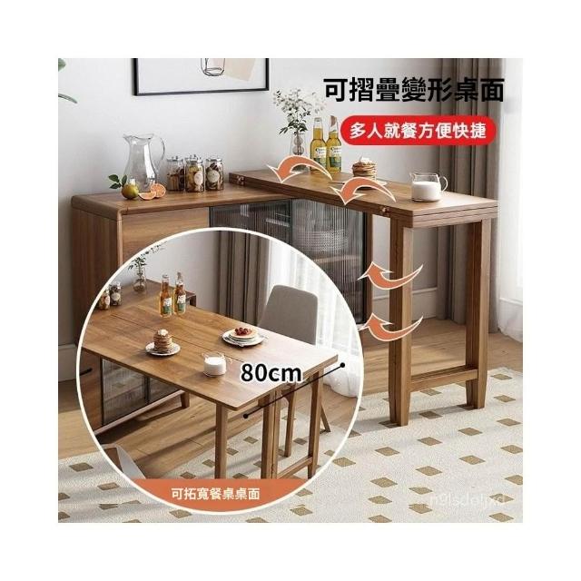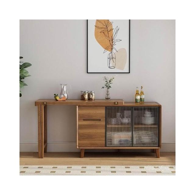 日式折疊餐桌餐邊櫃一體中式小戶型傢用靠墻儲物耐用收納櫃可伸縮飯桌 餐桌 餐桌椅 飯桌