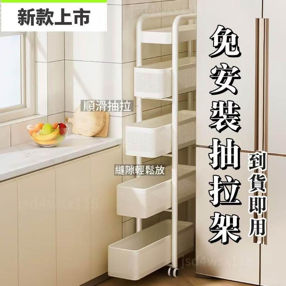 免運 冰箱側邊超窄置物櫃 抽拉置物櫃 家用儲物櫃 冰箱側櫃 小推車收納架 夾縫置物架 廚房置物架 收納架 超薄收納架