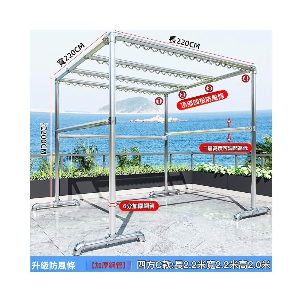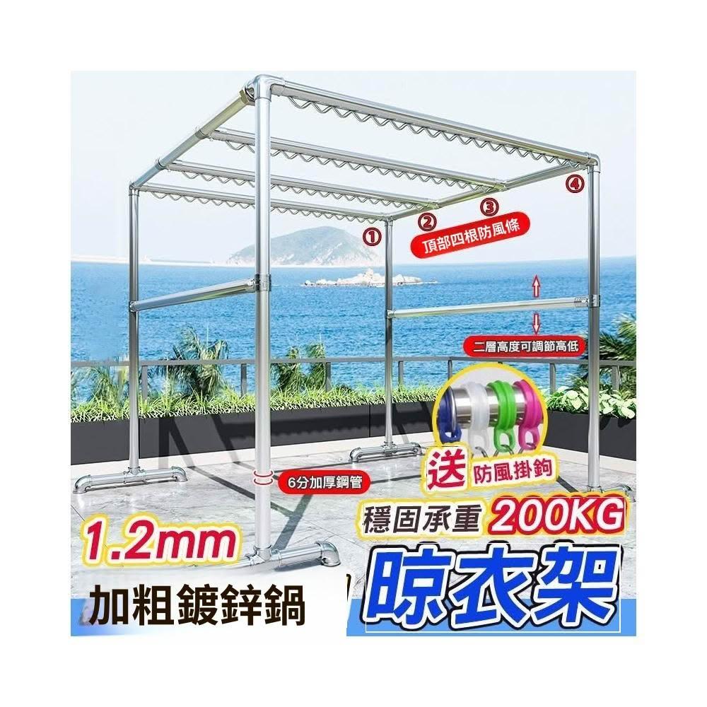 晾衣架 落地陽臺掛衣架 室外防風防銹曬被子 鍍鋅鋼管晾衣架 室外防風防銹曬被子戶外大型曬衣架