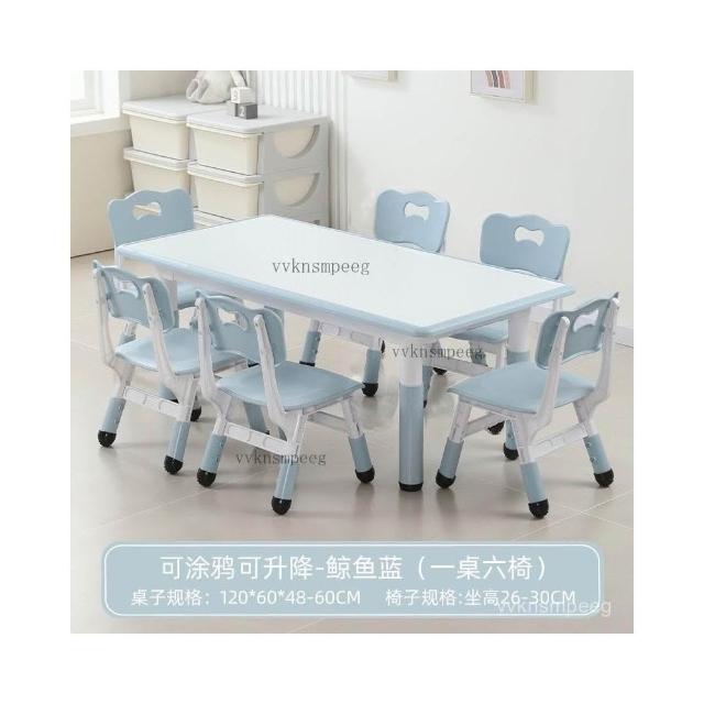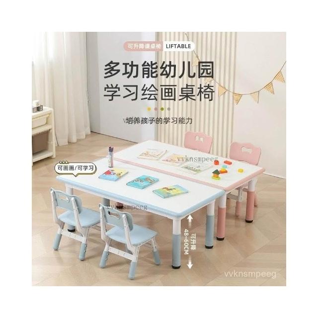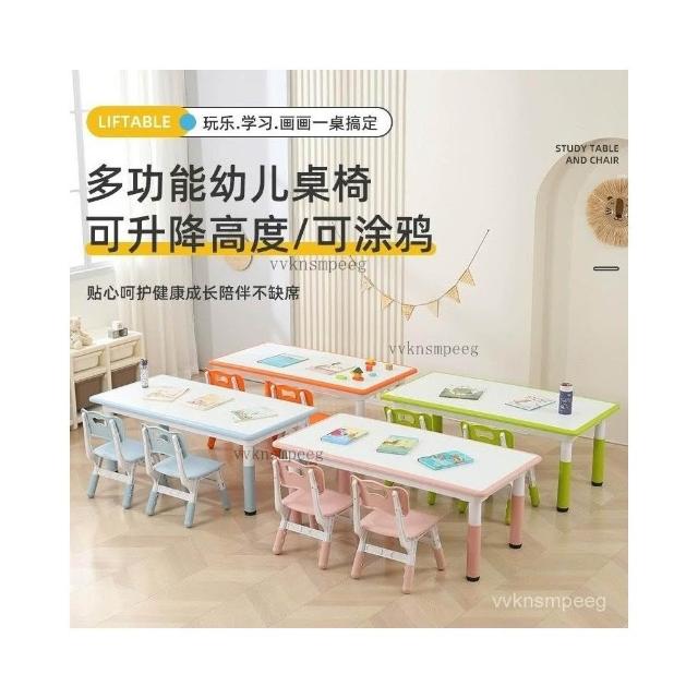 幼兒園桌椅兒童學習桌早敎塑料長方形可陞降桌子寶寶傢用畵畵書桌