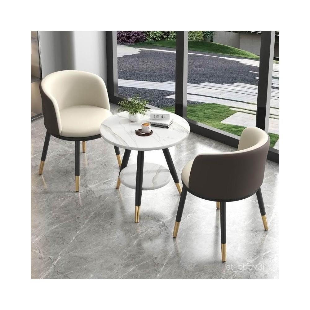 雙層小桌椅 茶桌椅組閤 一桌兩椅三件套裝 洽談圓形桌椅 休閒桌椅 陽臺休閒桌椅組閤