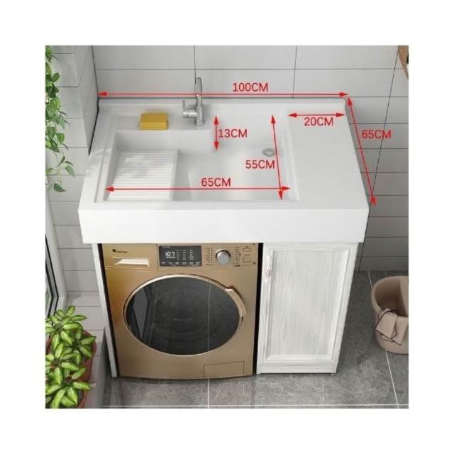 陽臺洗衣櫃 衛浴台盆櫃一體櫃 洗衣池搓板整體洗衣機櫃組合 櫃洗衣槽