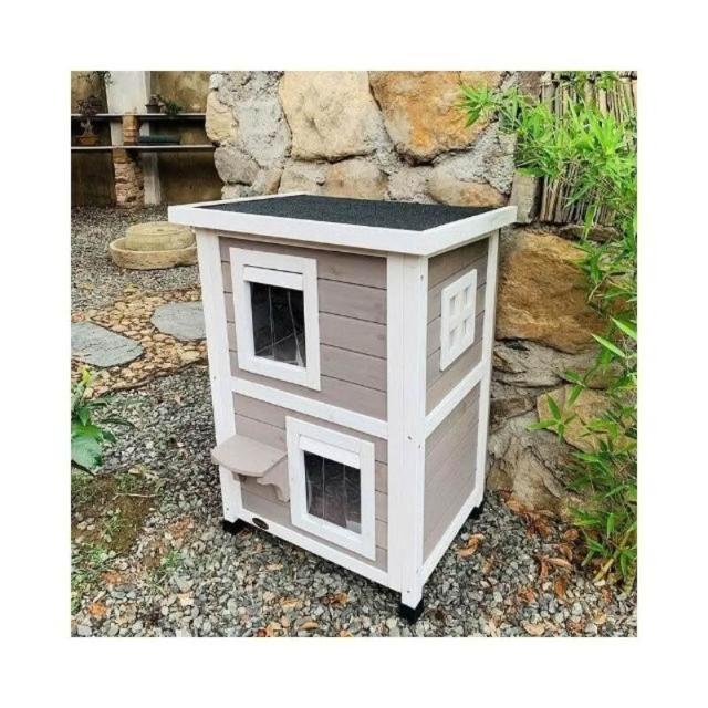 免運~戶外貓屋 木製雙層貓窩貓別墅 室內貓産房室外防雨保暖流浪貓捨貓籠