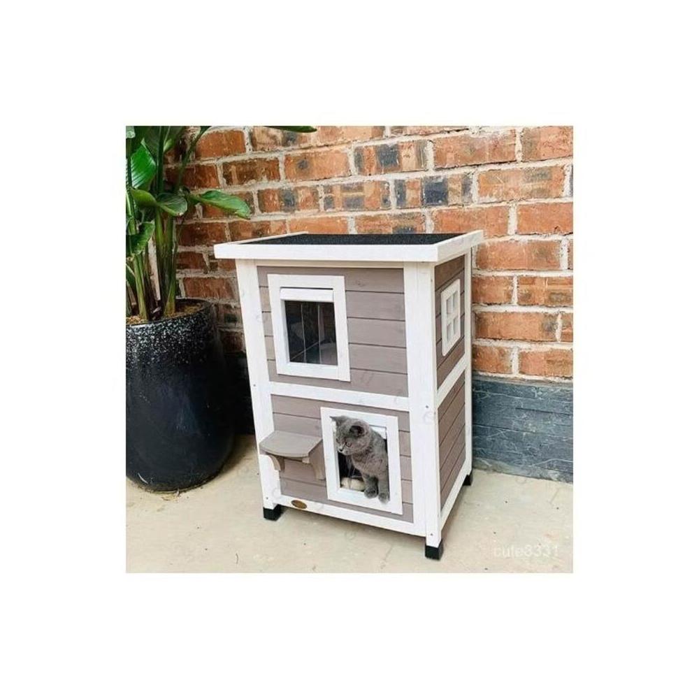 免運~戶外貓屋 木製雙層貓窩貓別墅 室內貓産房室外防雨保暖流浪貓捨貓籠