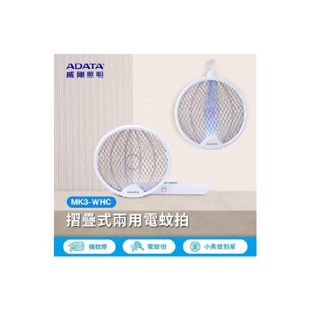 ADATA 威剛摺疊兩用充電式兩用電蚊拍捕蚊燈 MK3 捕蚊拍捕蚊器 MK3-WHC LED紫光誘蚊壁掛旋轉折疊