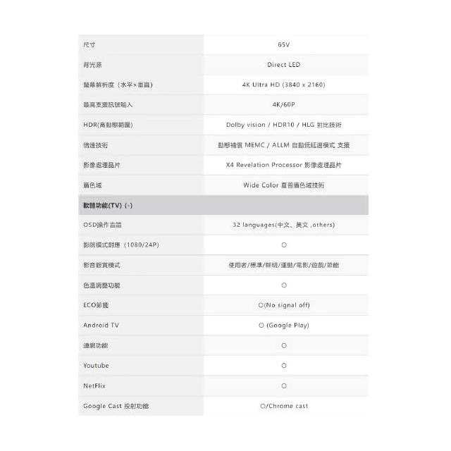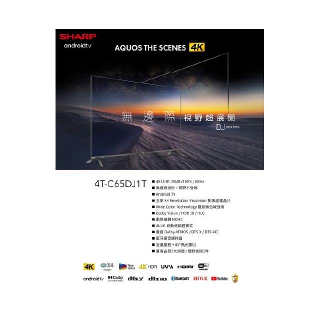 SHARP 夏普SHARP 夏普 65吋 AQUOS THE SCENES 4K Android連網電視 4T-C65DJ1T 僅運送無安裝