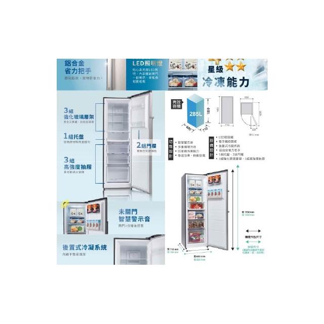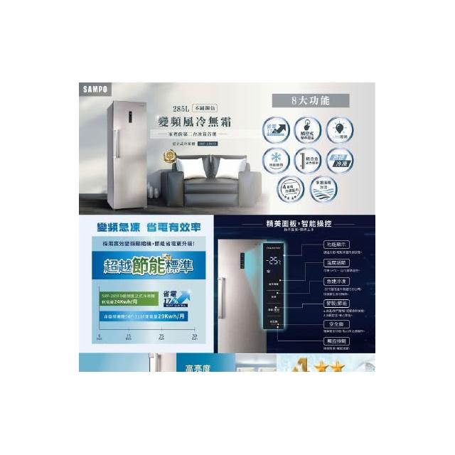 SAMPO 聲寶【SAMPO聲寶】285公升 自動除霜 直立式冷凍櫃 SRF-285FD 宅配無安裝 可回收舊機 全省配送一樓