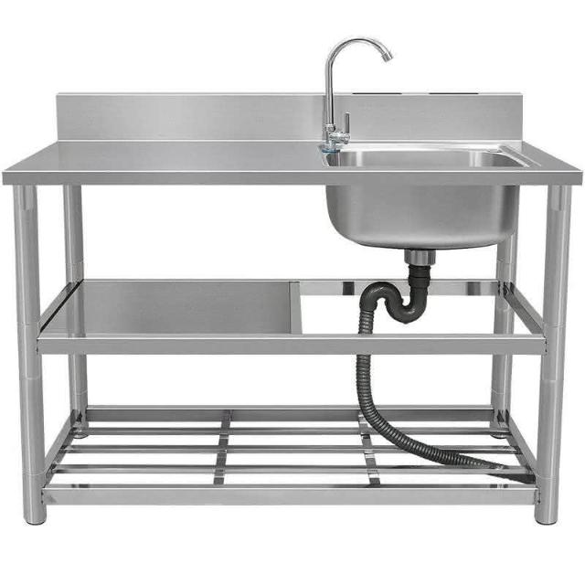 免運 廚房不銹鋼水槽 帶支架簡易洗手盆 洗碗池 臺麵一體式洗菜盆 水池 單槽 不鏽鋼水槽 流理臺 廚房洗手臺平臺一體櫃