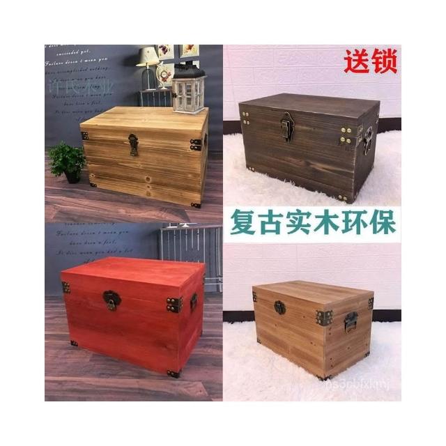 木質收納盒 木箱 復古木箱帶蓋儲物箱實木收納箱帶鎖小木盒做舊服裝店裝飾道具箱子