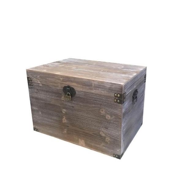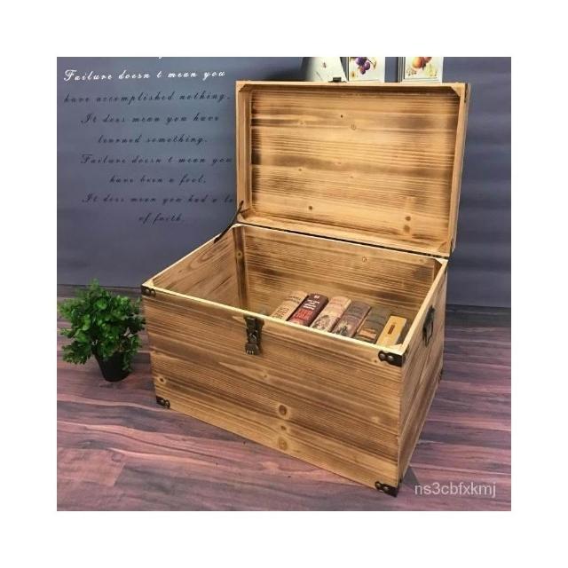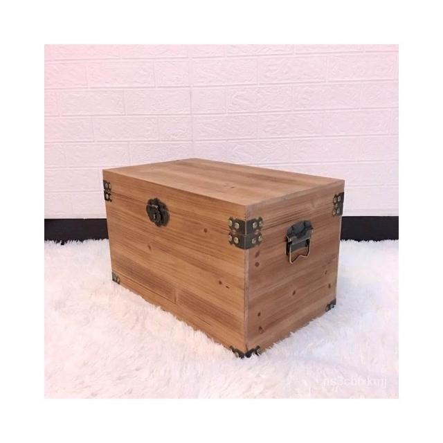 木質收納盒 木箱 復古木箱帶蓋儲物箱實木收納箱帶鎖小木盒做舊服裝店裝飾道具箱子