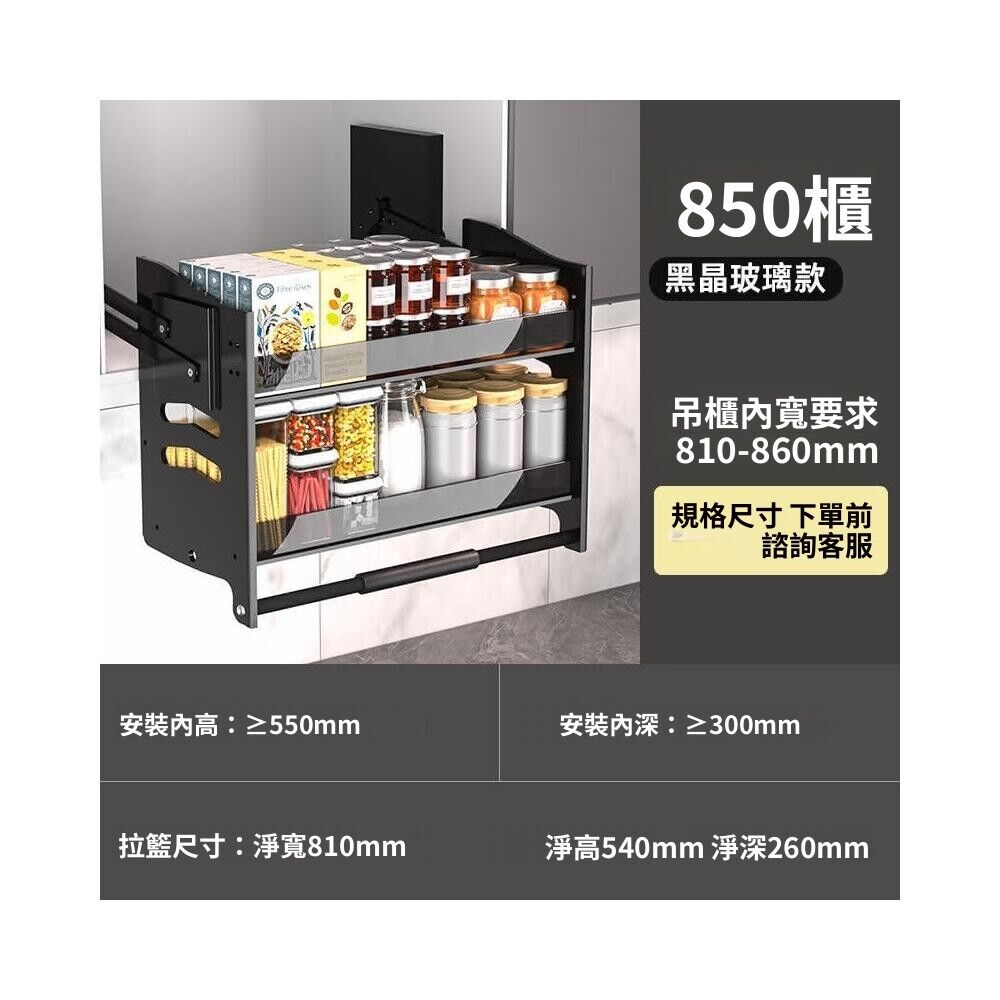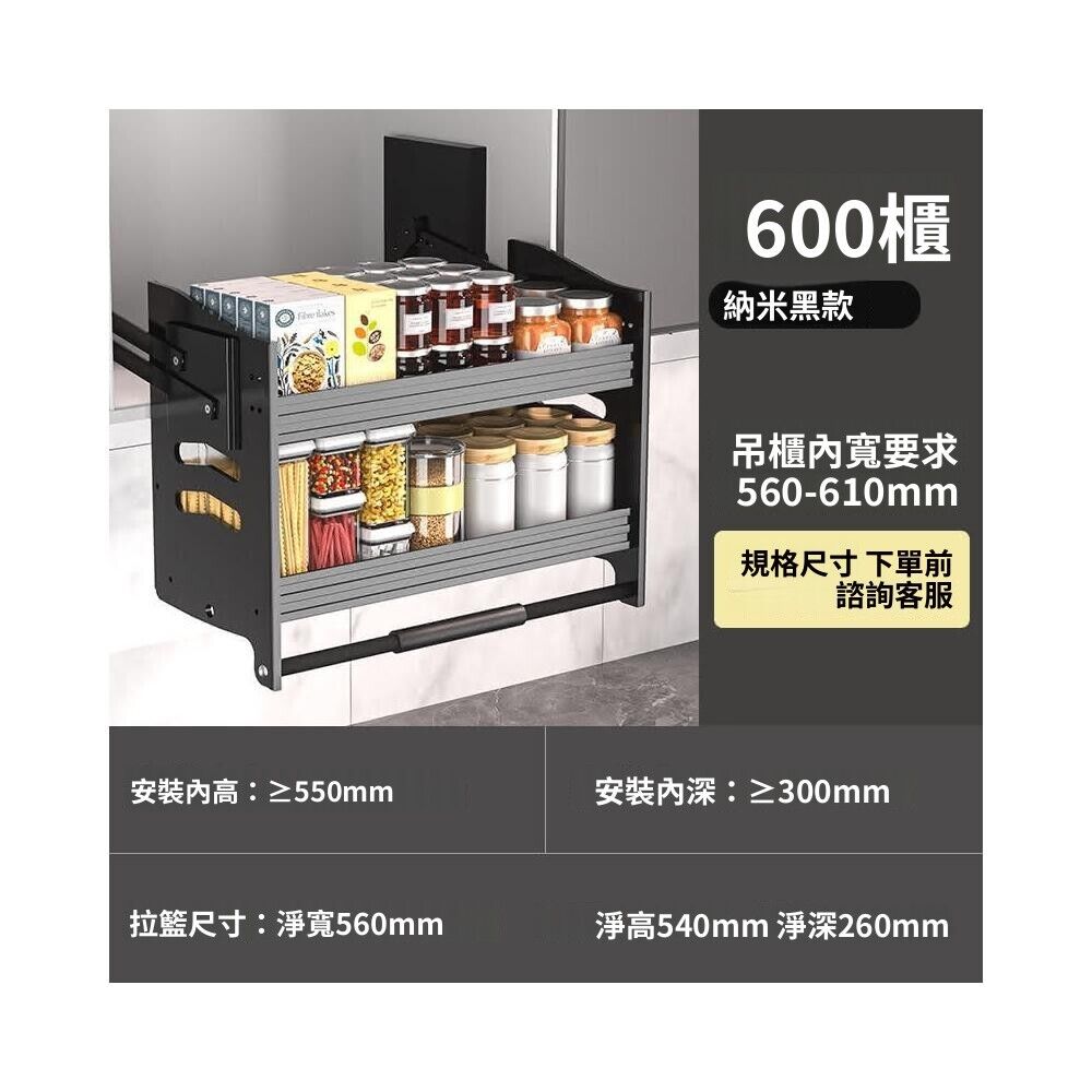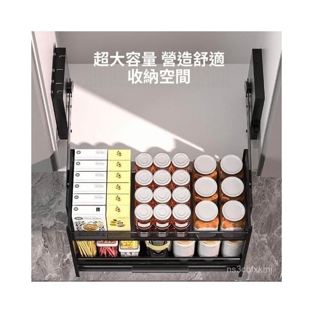 新款廚房吊櫃陞降拉籃 櫥櫃上下緩衝高櫃開門式調味籃 太空鋁下拉式廚櫃調料架收納架 櫥櫃鑲入式置物架