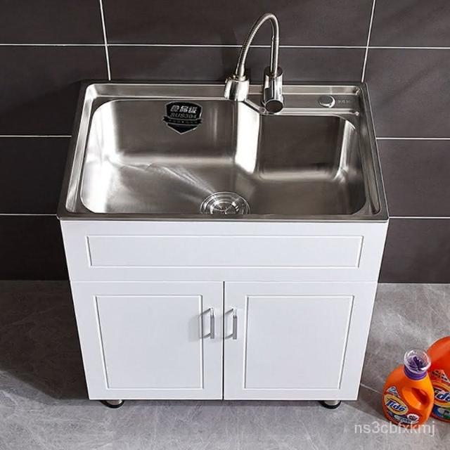 304不鏽鋼水槽 洗衣槽 洗手槽 洗菜盆 水槽櫃 洗衣櫃陽臺家用洗衣池單櫃落地式浴室櫃組閤帶搓闆 洗手臺 流理臺