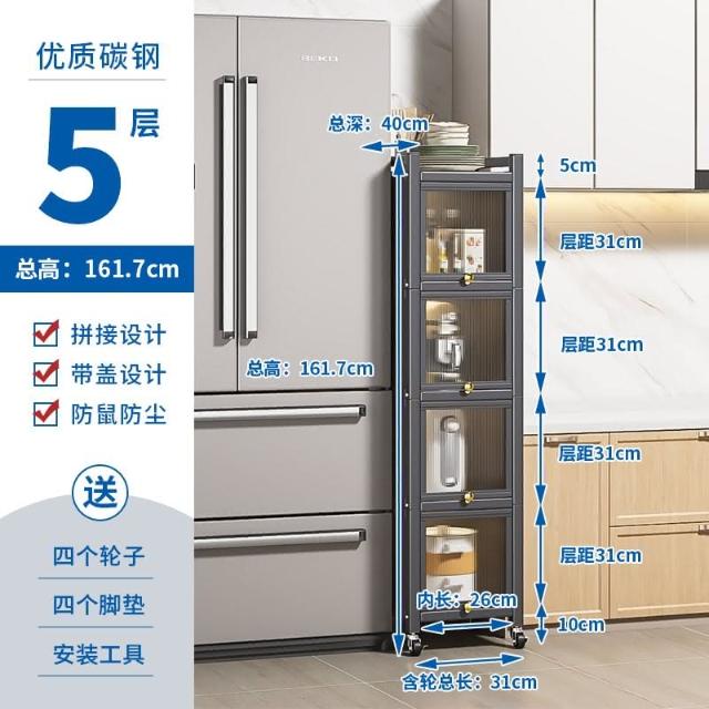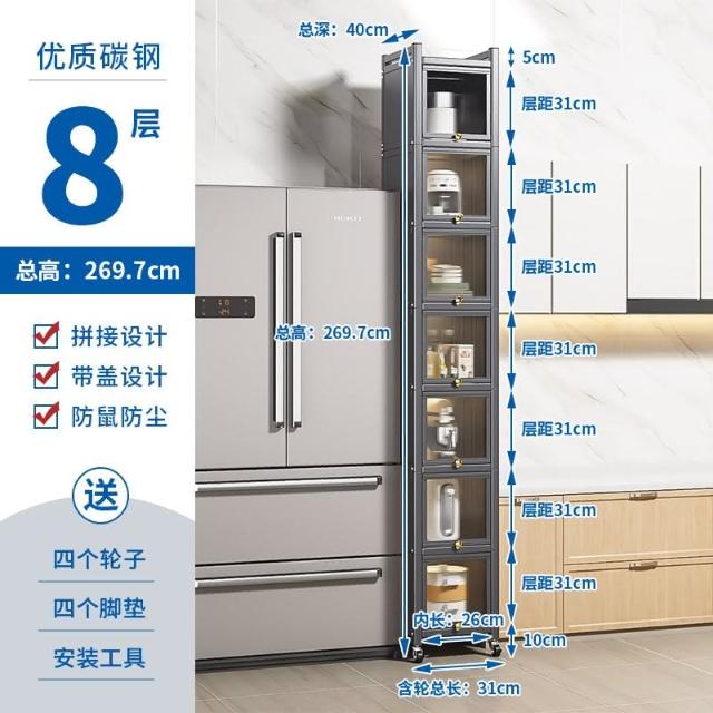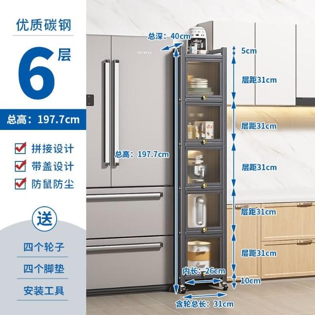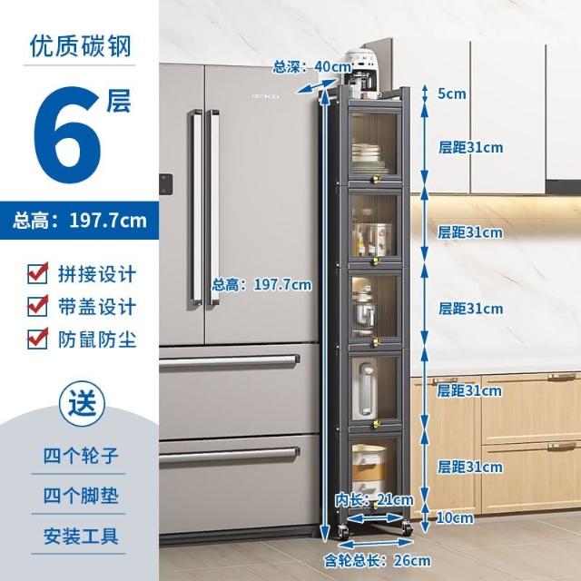 免運 夾縫收納櫃 夾縫櫃 廚房置物架帶門客廳餐邊櫃子縫隙置物櫃盤碟電器調味料夾縫儲物櫃