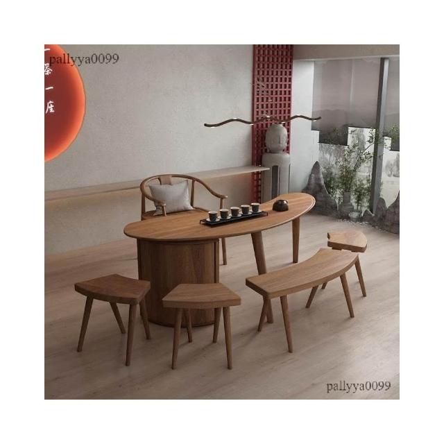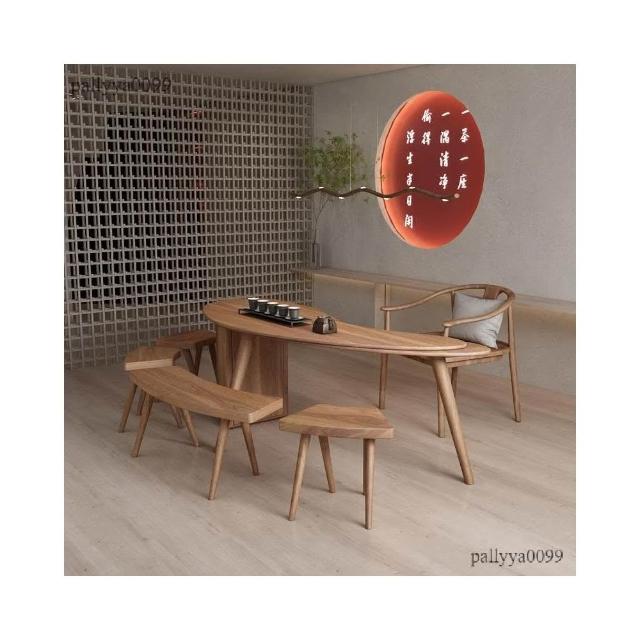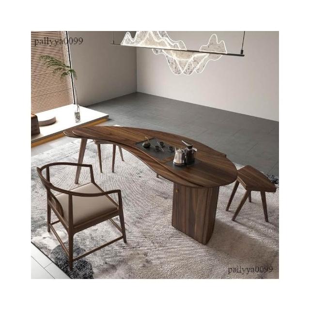 免運 新中式茶桌椅組合 禪意茶館全實木茶桌椅 黑胡桃現代簡約新款茶藝桌