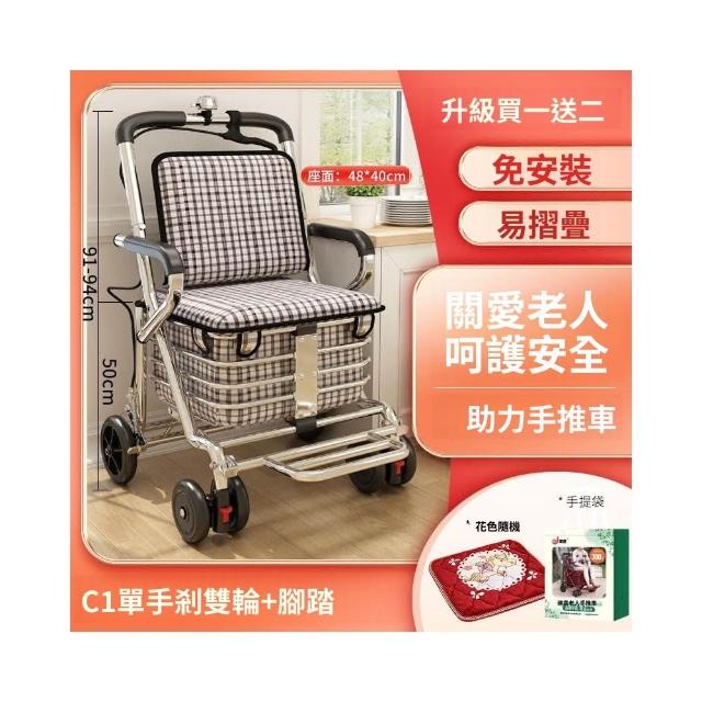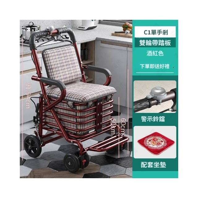限時免運🎉老人代步車 折疊購物車 四輪買菜車 可推可坐 收納手推車 老年出行車 折疊助行推車 買菜小拉車 老年人輔助車