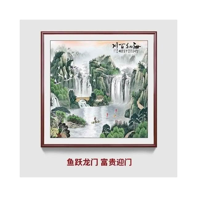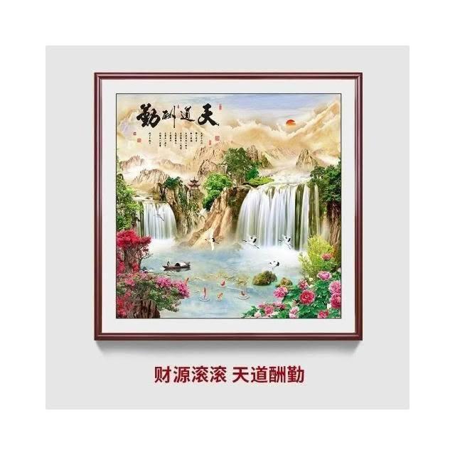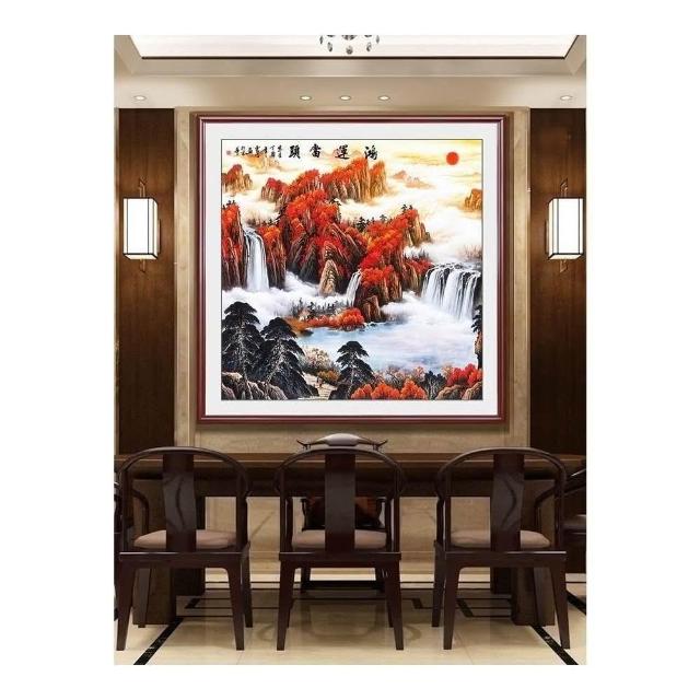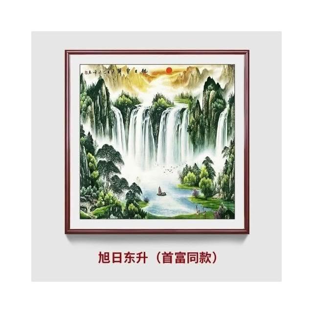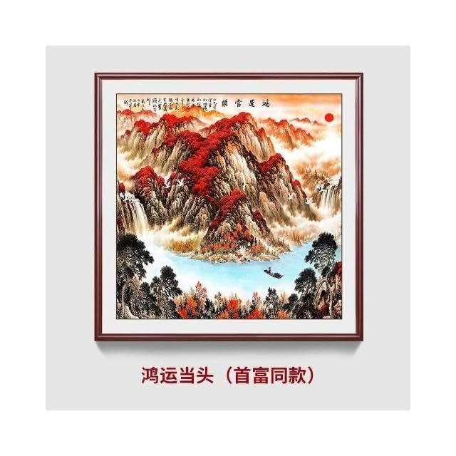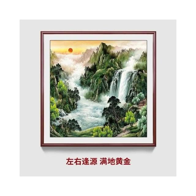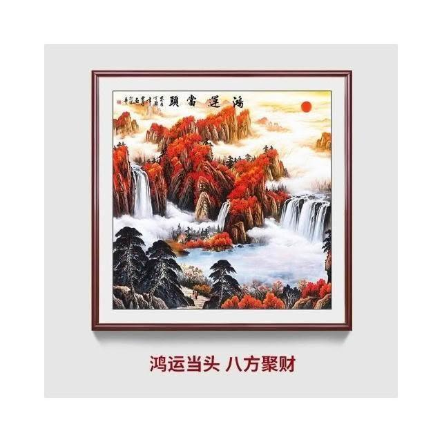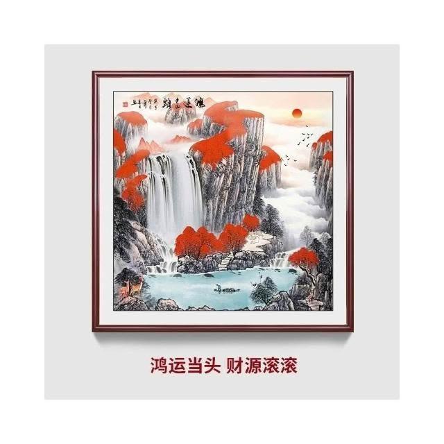 招財開運 旭日東升山水畫 風水靠山圖 寶地生金掛畫 玄關走廊過道裝飾畫 方形國畫 免運