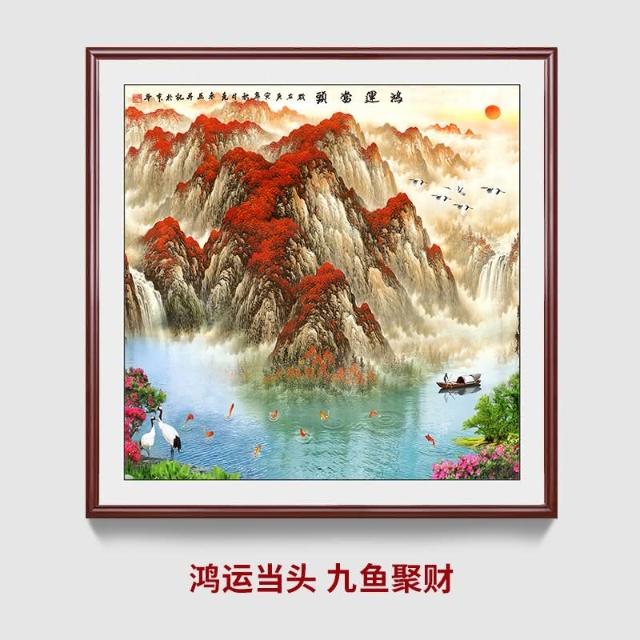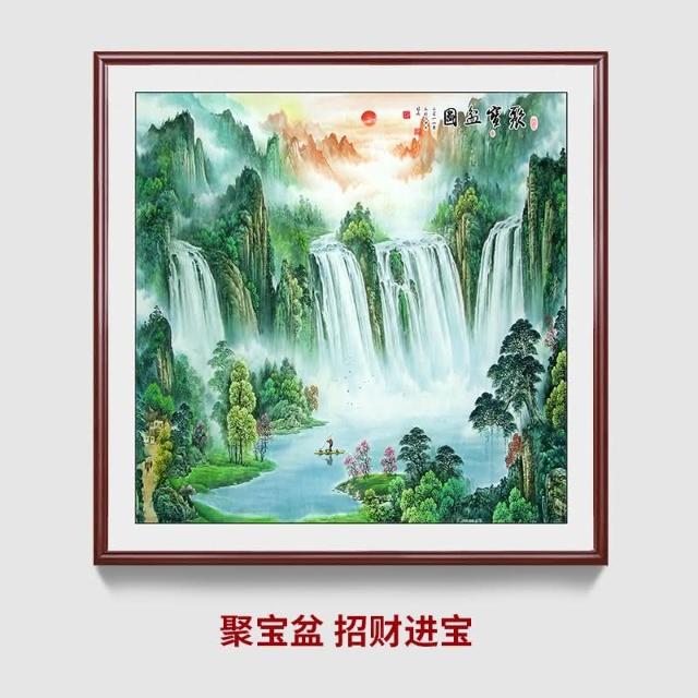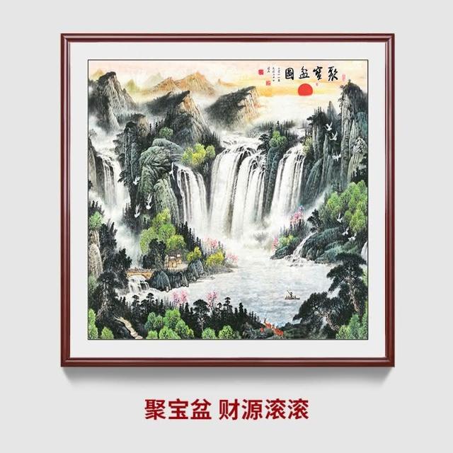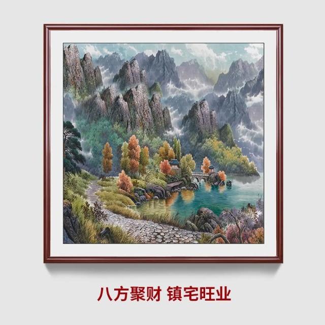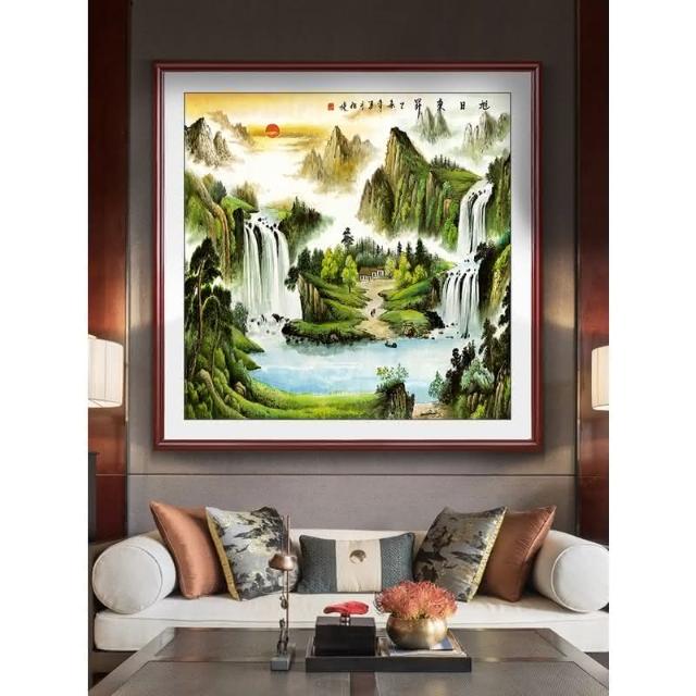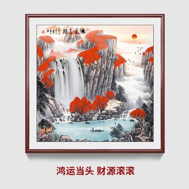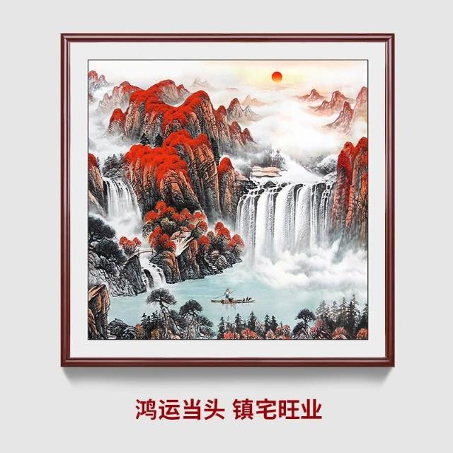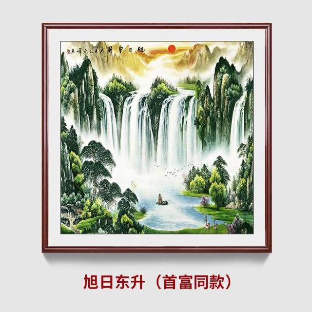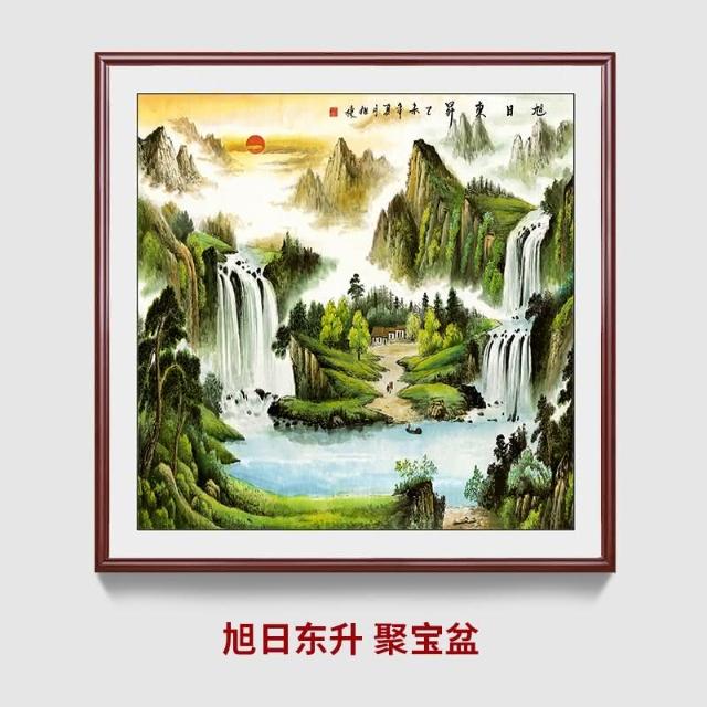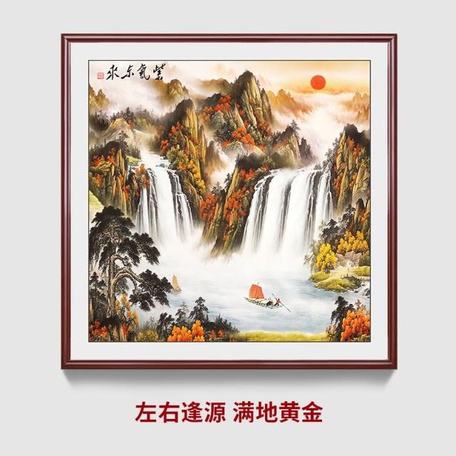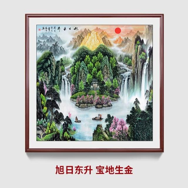 招財開運 旭日東升山水畫 風水靠山圖 寶地生金掛畫 玄關走廊過道裝飾畫 方形國畫 免運